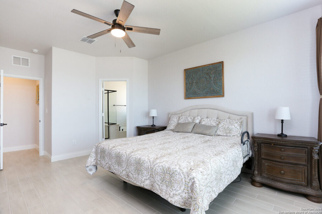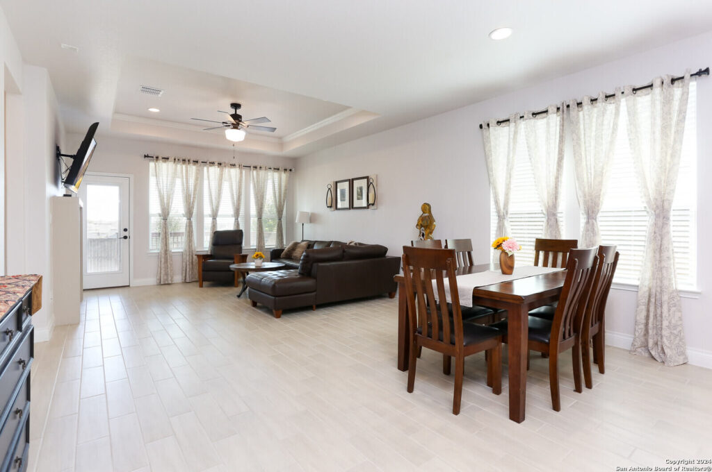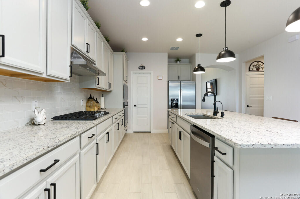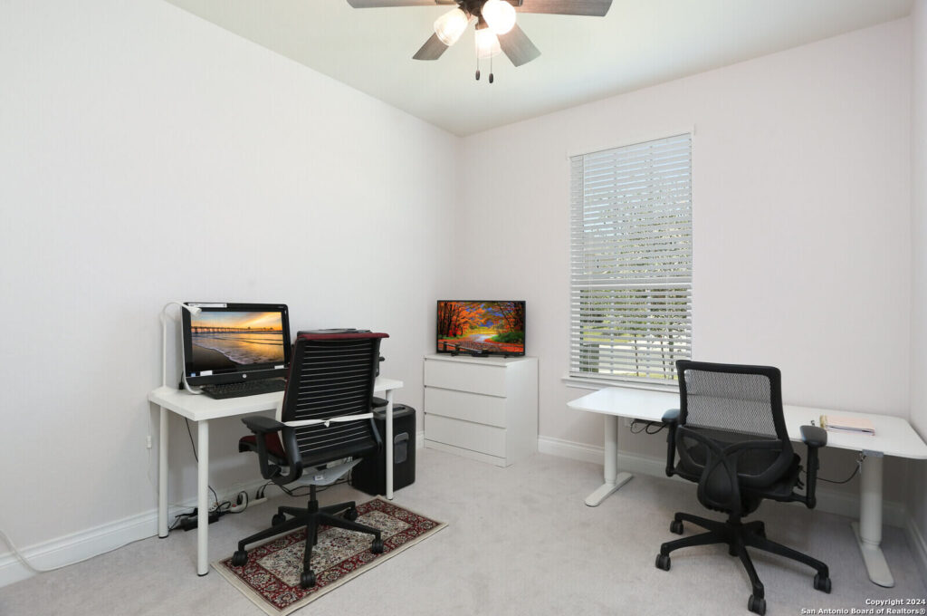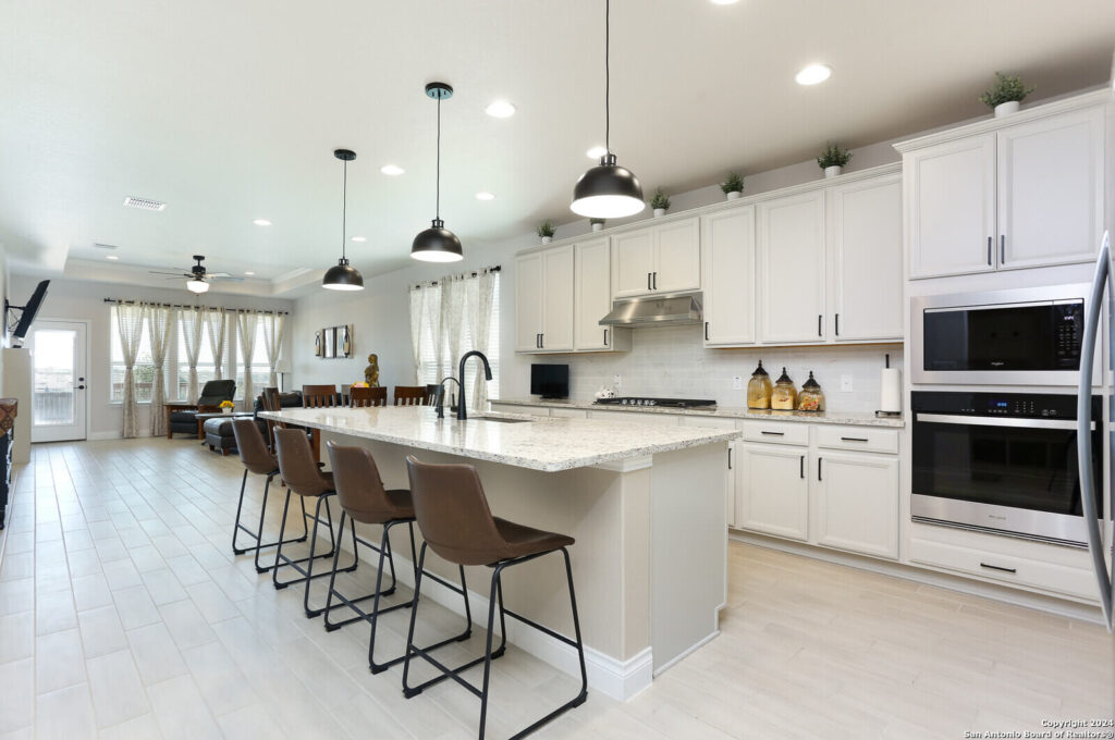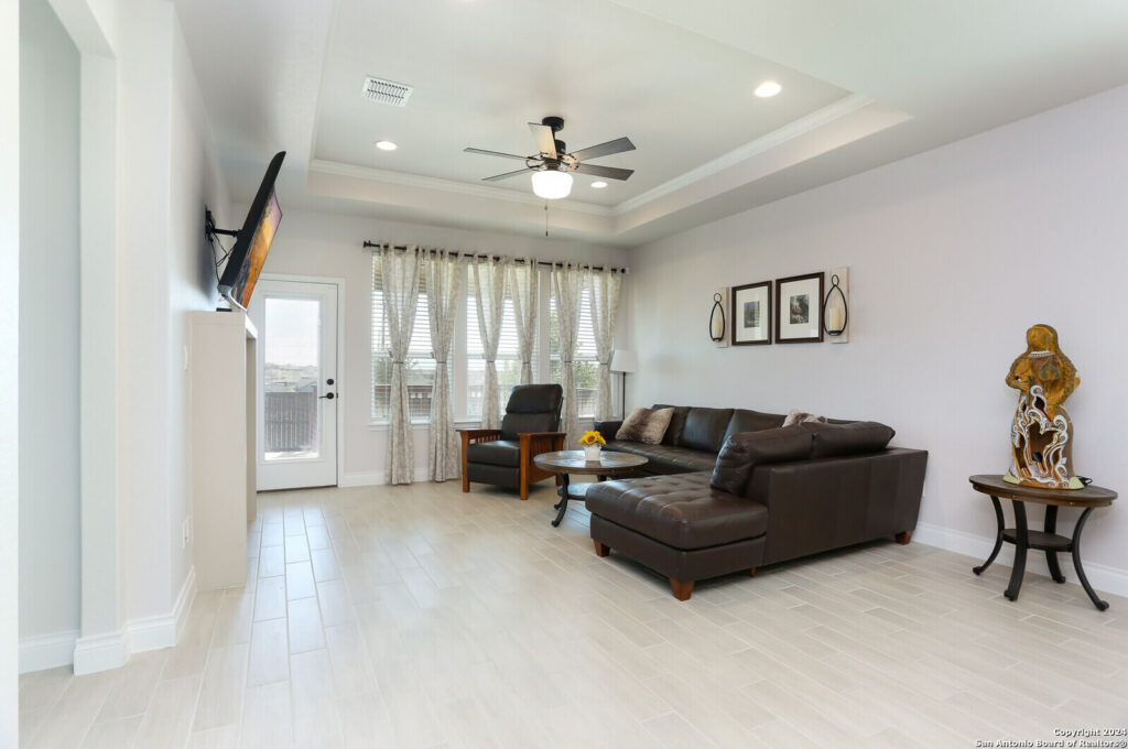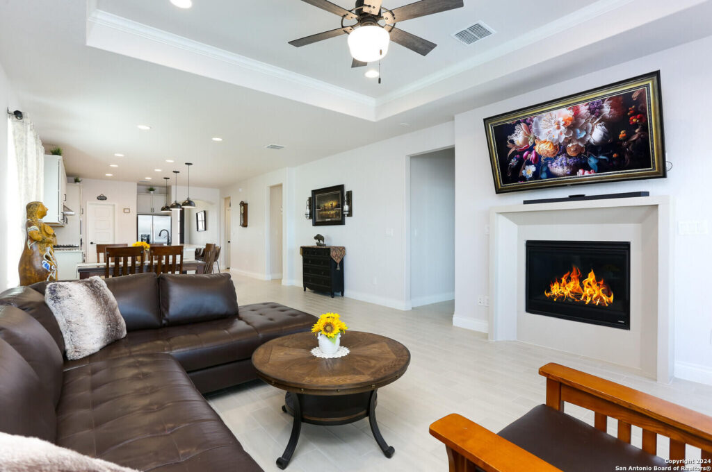 This stunning 4 bed 2 full baths, like-new home in the best Northwest area of San Antonio, is the epitome of modern living, elevated by a list of impressive upgrades that truly make each space pop which are: Upgraded cabinets, walk-in pantry, cooktop and in-wall ovens, tile and carpets, step-in shower, main bedroom bay window, fireplace, extended patio and modern sprinkler system PLUS 3 new ceiling fans and garage racks!!! Step inside and be amazed by the thoughtful design, featuring abundant closet space and a beautifully upgraded open island kitchen that flows seamlessly into the cafe and gathering room-perfect for both entertaining and everyday living. The owner’s bath is a true retreat with dual sinks and a luxurious, upgraded walk-in shower that adds a touch of elegance. The flexible living spaces are even more remarkable with the owner’s custom touches, allowing an easy conversion into a home office or extra bedroom to suit your lifestyle. From upgraded finishes to smart storage solutions, the attention to detail throughout this home really makes it stand out. Don’t miss the full list of upgrades that take this home from great to absolutely WOW!