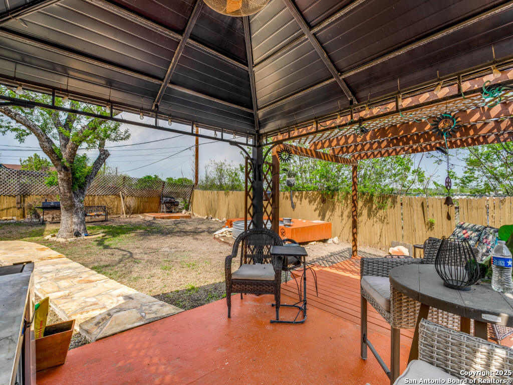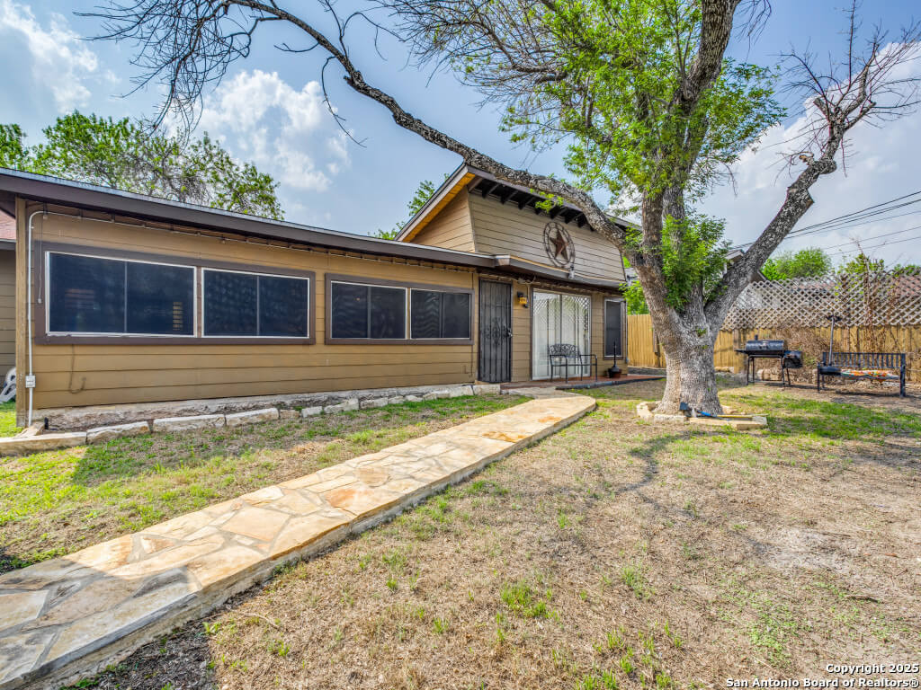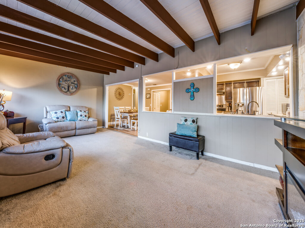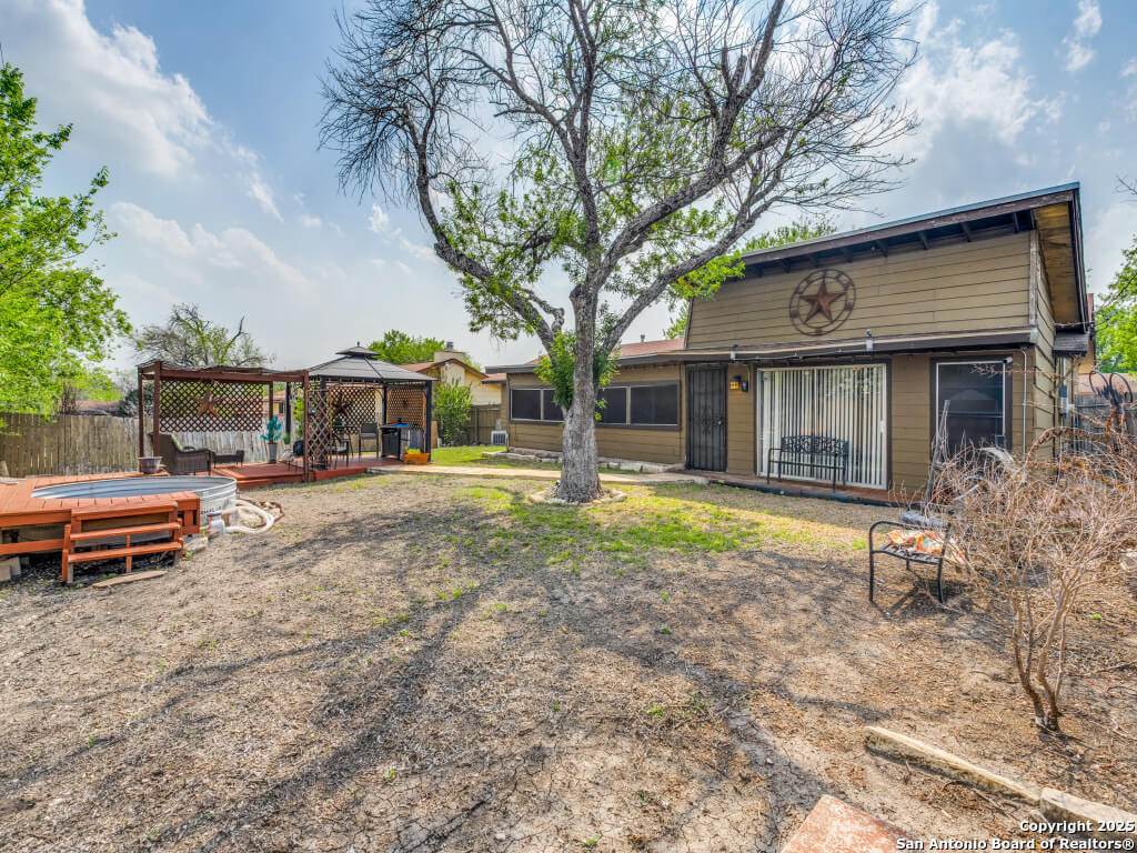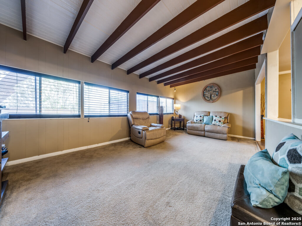 Beautifully maintained and move-in-ready, this home offers space, style, and smart potential just minutes from Lackland AFB. Featuring 3 bedrooms, 2 full bathrooms, and a extra family room, this Texas Hill Country-style home has a flexible layout ideal for families, multi-generational living, or investment opportunities. The main living area boasts high ceilings with exposed wood beams and oversized windows that flood the space with natural light. A second living area offers options for a home office, game room, or bonus room to suit your lifestyle. The kitchen includes a cozy breakfast nook with a bay window-perfect for casual meals or morning coffee. All bedrooms are generously sized for comfort and functionality, and the open layout allows for easy furniture flow. Step outside to a spacious enclosed patio with two gazebos-ideal for entertaining or relaxing year-round. The backyard is a blank canvas ready for gardening, play areas, or outdoor enhancements. Additional features include a 2-car garage with openers, a full security system for peace of mind, and a prime location near shopping, dining, and major employers. Priced to sell and loaded with potential, this home is a smart buy for first-time buyers, seasoned homeowners, or investors. Schedule your showing today and explore the possibilities!