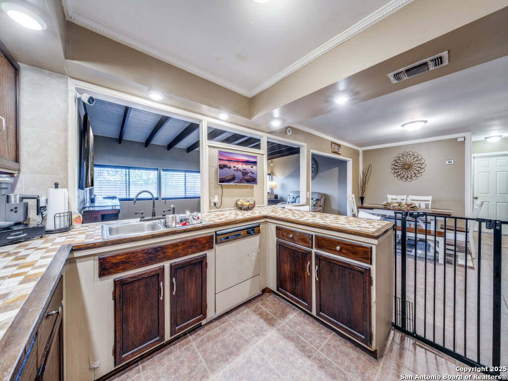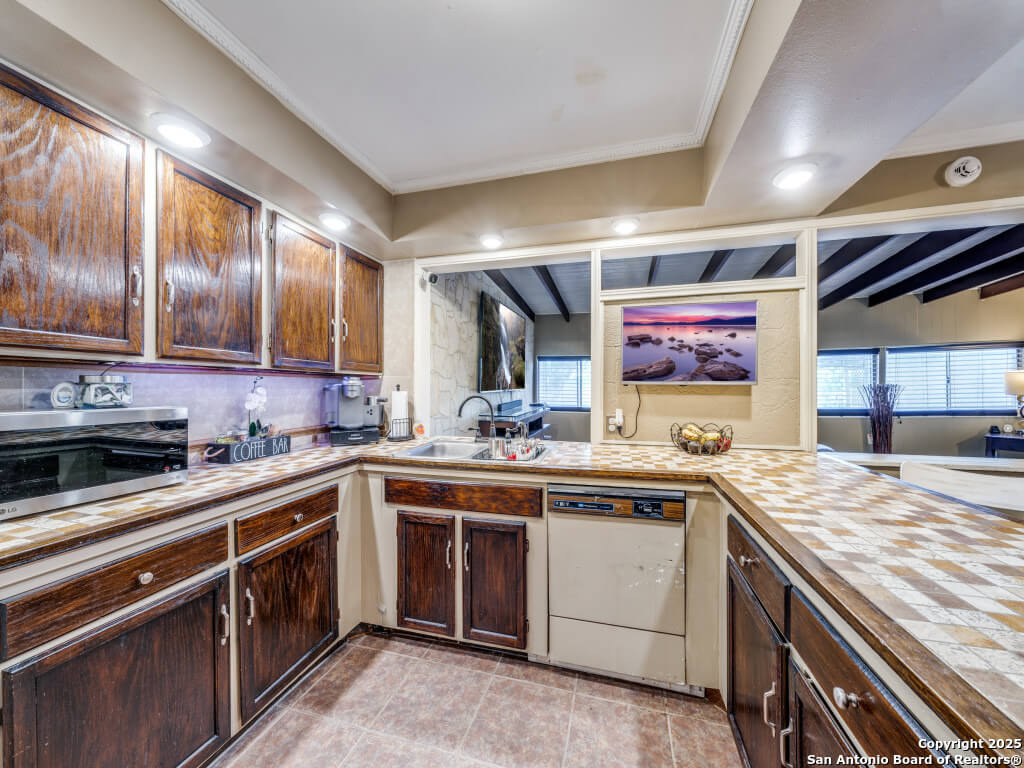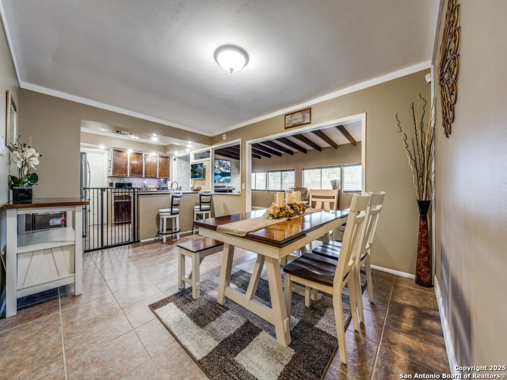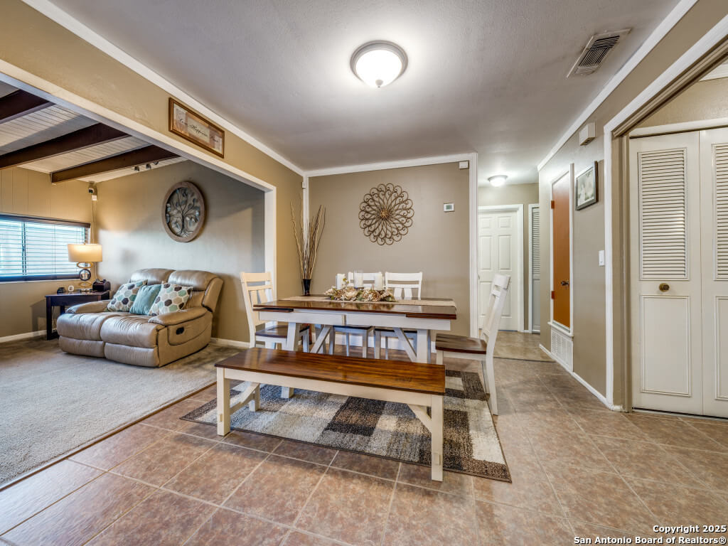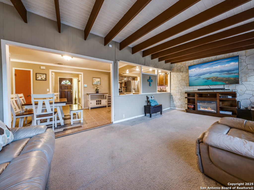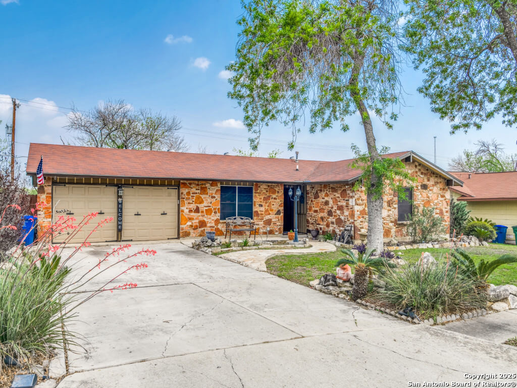 Beautifully maintained and move-in-ready, this home offers space, style, and smart potential just minutes from Lackland AFB. Featuring 3 bedrooms, 2 full bathrooms, and a extra family room, this Texas Hill Country-style home has a flexible layout ideal for families, multi-generational living, or investment opportunities. The main living area boasts high ceilings with exposed wood beams and oversized windows that flood the space with natural light. A second living area offers options for a home office, game room, or bonus room to suit your lifestyle. The kitchen includes a cozy breakfast nook with a bay window-perfect for casual meals or morning coffee. All bedrooms are generously sized for comfort and functionality, and the open layout allows for easy furniture flow. Step outside to a spacious enclosed patio with two gazebos-ideal for entertaining or relaxing year-round. The backyard is a blank canvas ready for gardening, play areas, or outdoor enhancements. Additional features include a 2-car garage with openers, a full security system for peace of mind, and a prime location near shopping, dining, and major employers. Priced to sell and loaded with potential, this home is a smart buy for first-time buyers, seasoned homeowners, or investors. Schedule your showing today and explore the possibilities!