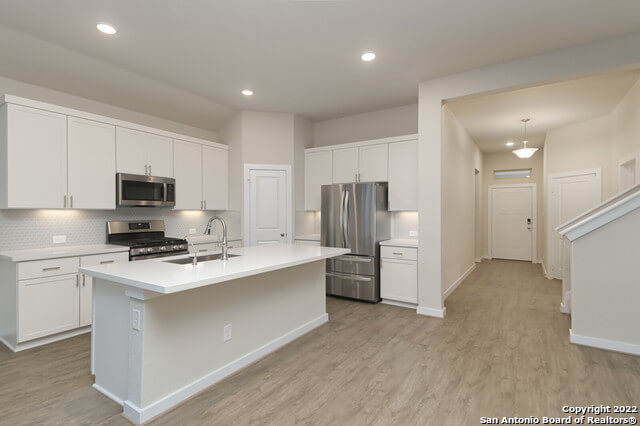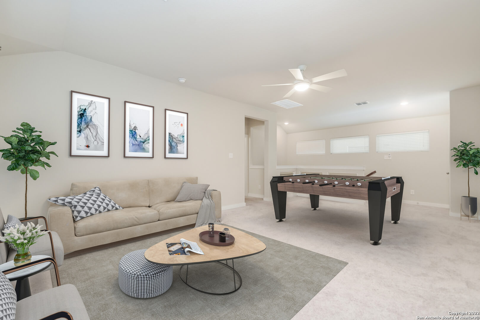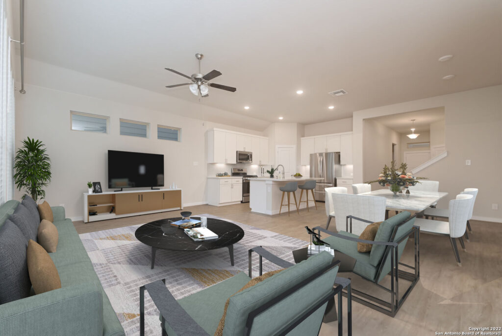This like-new 4-bedroom, 3-bath home in Northwest San Antonio near the Medical Center is a rare find in today’s low-inventory market. Purchased in 2021 and meticulously maintained, it offers exceptional value compared to both resale and new construction-making it a smart move for any buyer. The open-concept layout features an oversized kitchen with custom cabinetry, gas cooking, a large island, and breakfast bar flowing into bright dining and living areas. Comfort is enhanced by a gas furnace for efficient heating. The main-level owner’s suite boasts a spa-style bath with dual vanities, glass-door shower, and walk-in closet, while two additional bedrooms and a full bath complete the first floor. Upstairs, you’ll find a spacious game room and a private guest suite with full bath. The home sits on a generous lot within a thoughtfully designed community known for its wide streets, creating an open, inviting feel. With ceiling fans and curtain rods in every room, five data ports for easy connectivity, and a water softener included. The sellers are really motivated to sell therefore offering some builder-like incentives, i.e. closing cost concessions or assistance with a 2-1 rate buydown to help you lock in affordability while rates are dipping. This is truly an amazing opportunity!