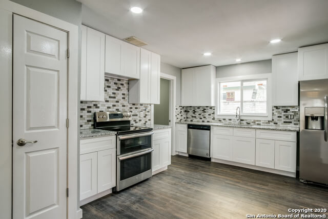 Gorgeous, spacious and totally remodeled 4 bed-2 bath home conveniently located in Northwest San Antonio with new floors, new AC system, new fiber cement siding and new paint both inside and out! The house features an open floor plan and a modern color palette throughout. You will be amazed by its large living and dinning area as soon as you get thru the door. The fully remodeled kitchen is equipped with new cabinets, new island and new granite counter tops as well as new appliances! The main suite looks fantastic with its new full bath and large walk-in closet. The additional 3 bedroom are very spacious as well. The house has new front and interior doors too, new fence on both sides and back. The back patio with tall mature trees and with its new privacy fence feels grate for intimate family gatherings or to welcome family and friends to party. Call us to set up a private showing, this house won’t last in the market. Served by NISD Schools!