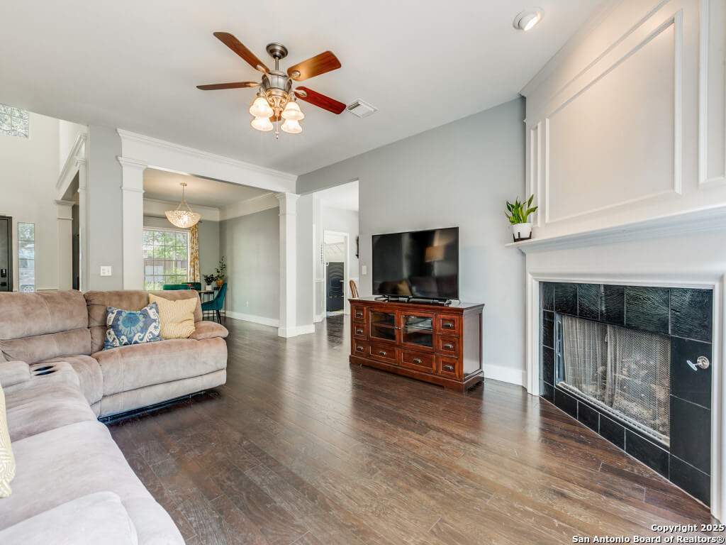Welcome home! This immaculate 2-story home is in the highly desirable Camino Bandera community. The 2,620 sq ft home features a freshly painted interior and exterior, a bright open-concept layout, and rich hardwood flooring throughout downstairs. The updated kitchen offers stainless steel appliances, soft close cabinets, a beautiful granite sink, and ample cabinet space-perfect for the home chef. The primary suite is conveniently located downstairs and includes a beautifully appointed, updated bathroom with a glass walk-in shower, bluetooth speaker wired into the fan, and sleek, modern finishes. Upstairs, you’ll find an additional large living area plus 3 generous secondary bedrooms. Step outside to a park-like backyard retreat with a 1-year-old deck, low-maintenance turf, and fresh landscaping, front and back, ideal for relaxing or entertaining. Enjoy all the amenities Camino Bandera has to offer: an Olympic-sized neighborhood pool, tennis and pickleball courts, two playgrounds, and community gatherings throughout the year. Conveniently located near shopping, dining, and major highways. This beauty is updated and move-in ready!
